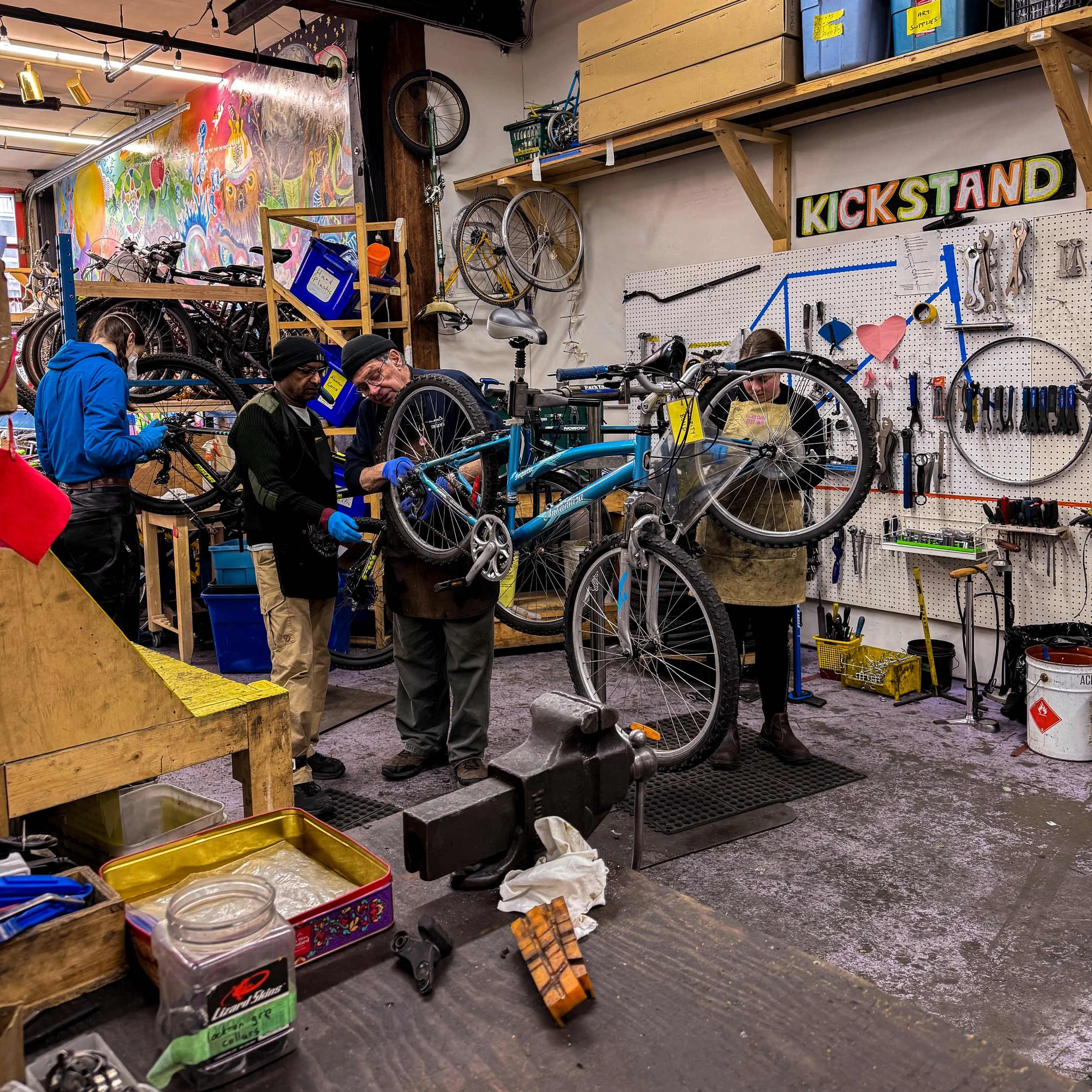 Kickstand is governed by a volunteer board of directors (the Kickstand committee) who is elected yearly at our Annual General Meeting (AGM) from the volunteer base. The shop is staffed by volunteers who share a passion for cycling and community. Kickstand also has two part time Program Coordinators that support with communications and shop operations. These are the only paid roles at the shop.